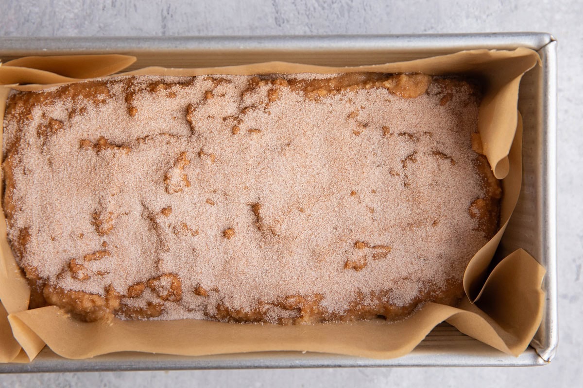 Sprinkle all of the cinnamon sugar coating mixture on top of the batter.
