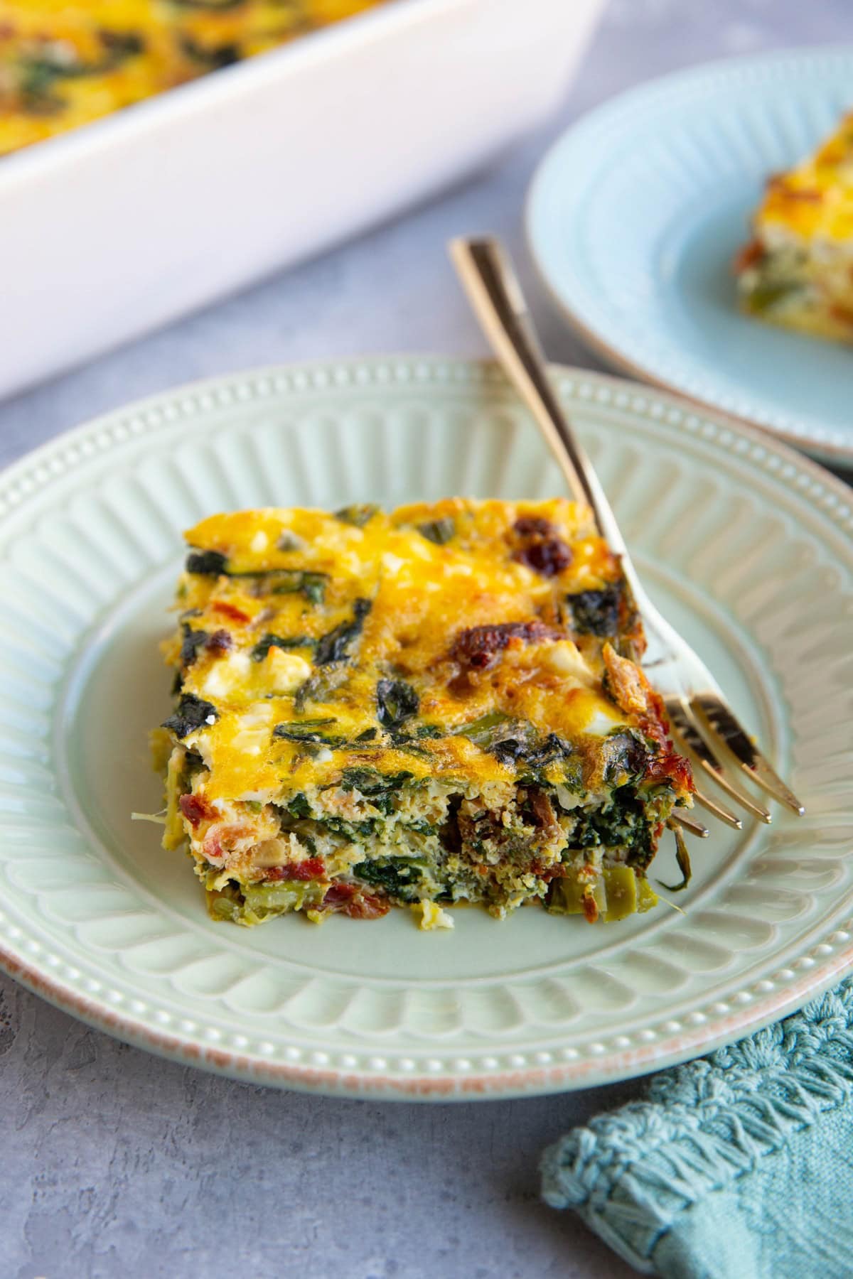 Asparagus Feta Breakfast Casserole with Sun-Dried Tomatoes and Spinach makes a nourishing high-protein breakfast that is positively packed with flavor. You’ll want to put this easy meal on repeat for weekday breakfasts or Sunday mornings.