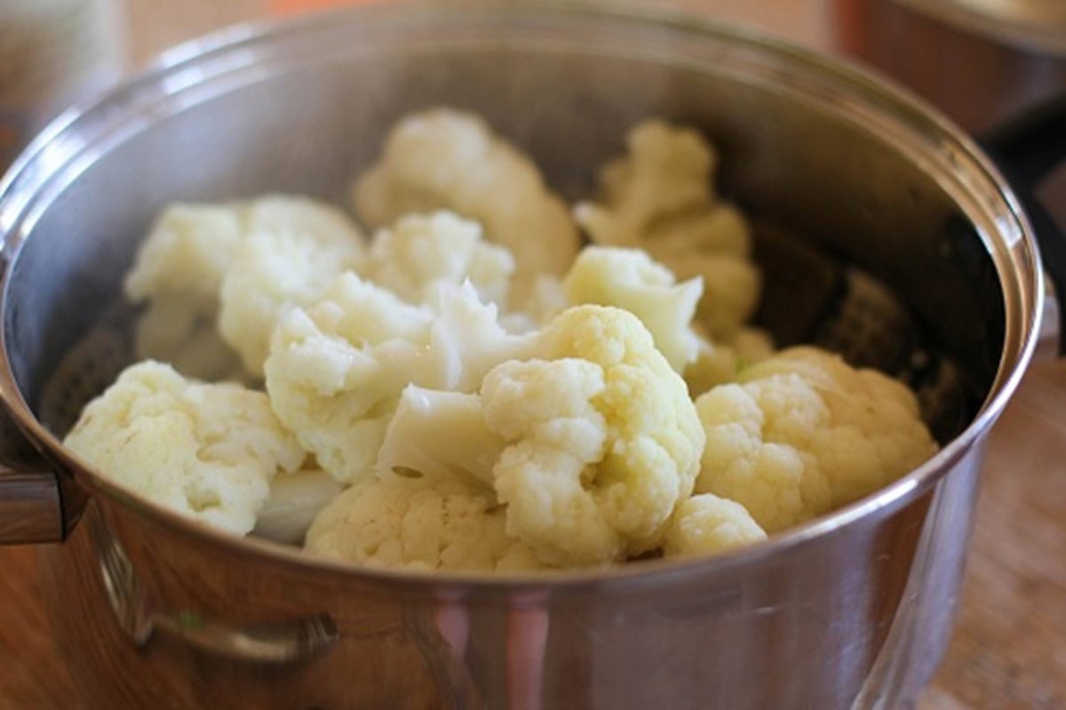 - Steam cauliflower in a pot until tender and a fork pokes easily into it
