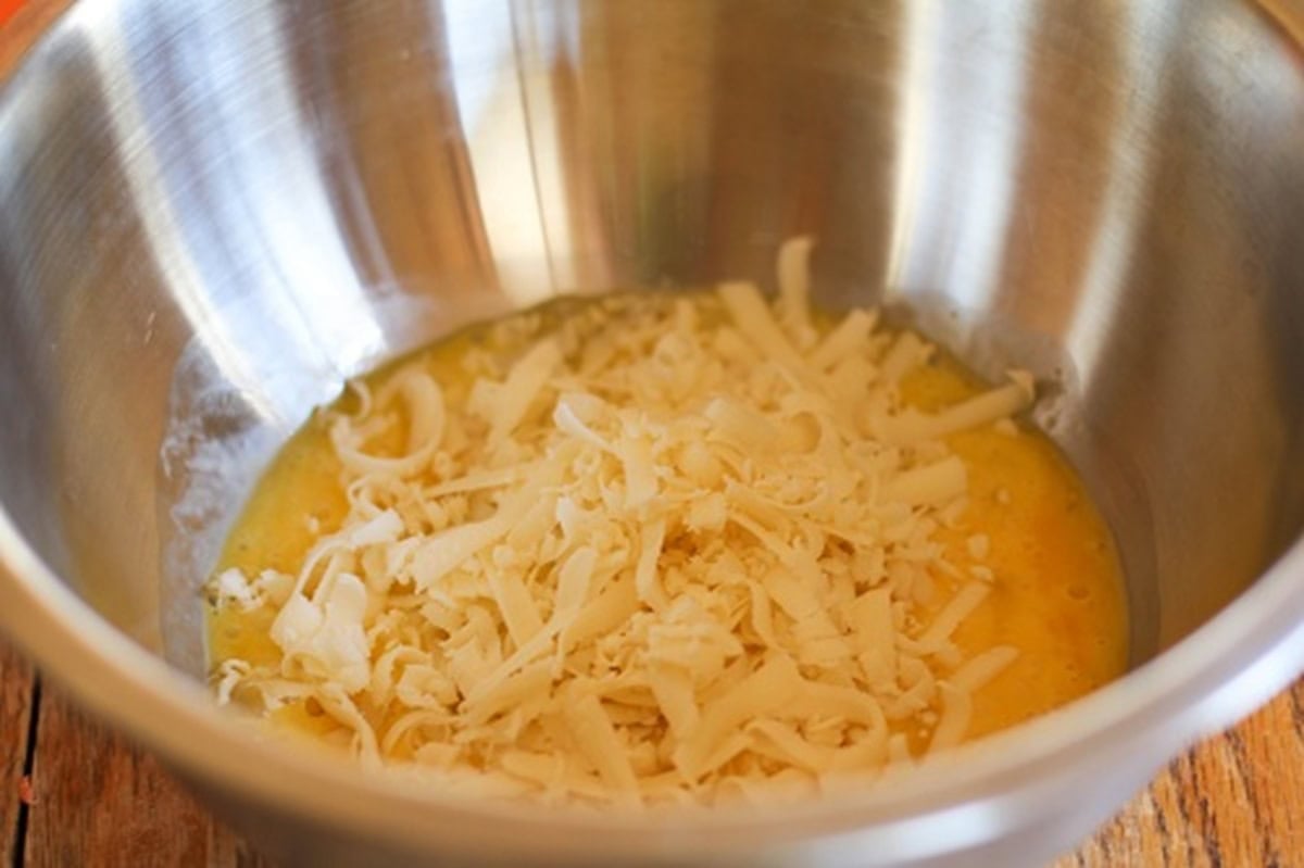 - In a bowl, whisk the eggs and mozerella cheese together.