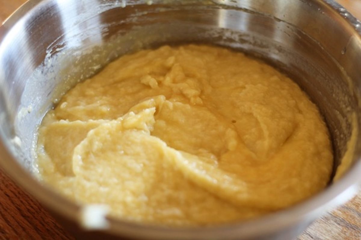 Stir everything well until all of the ingredients are incorporated and a relatively smooth batter forms. Your cheese will look all stringy and melty. This is deliciousness.