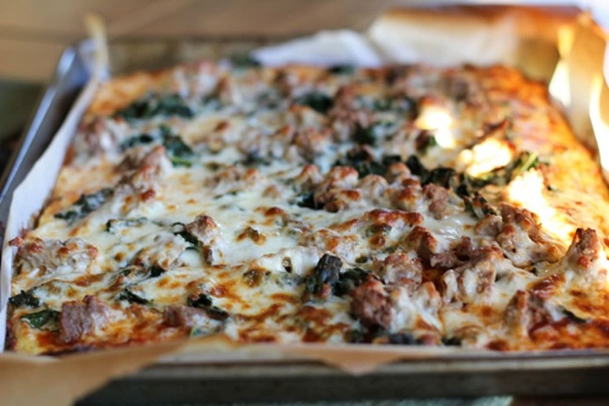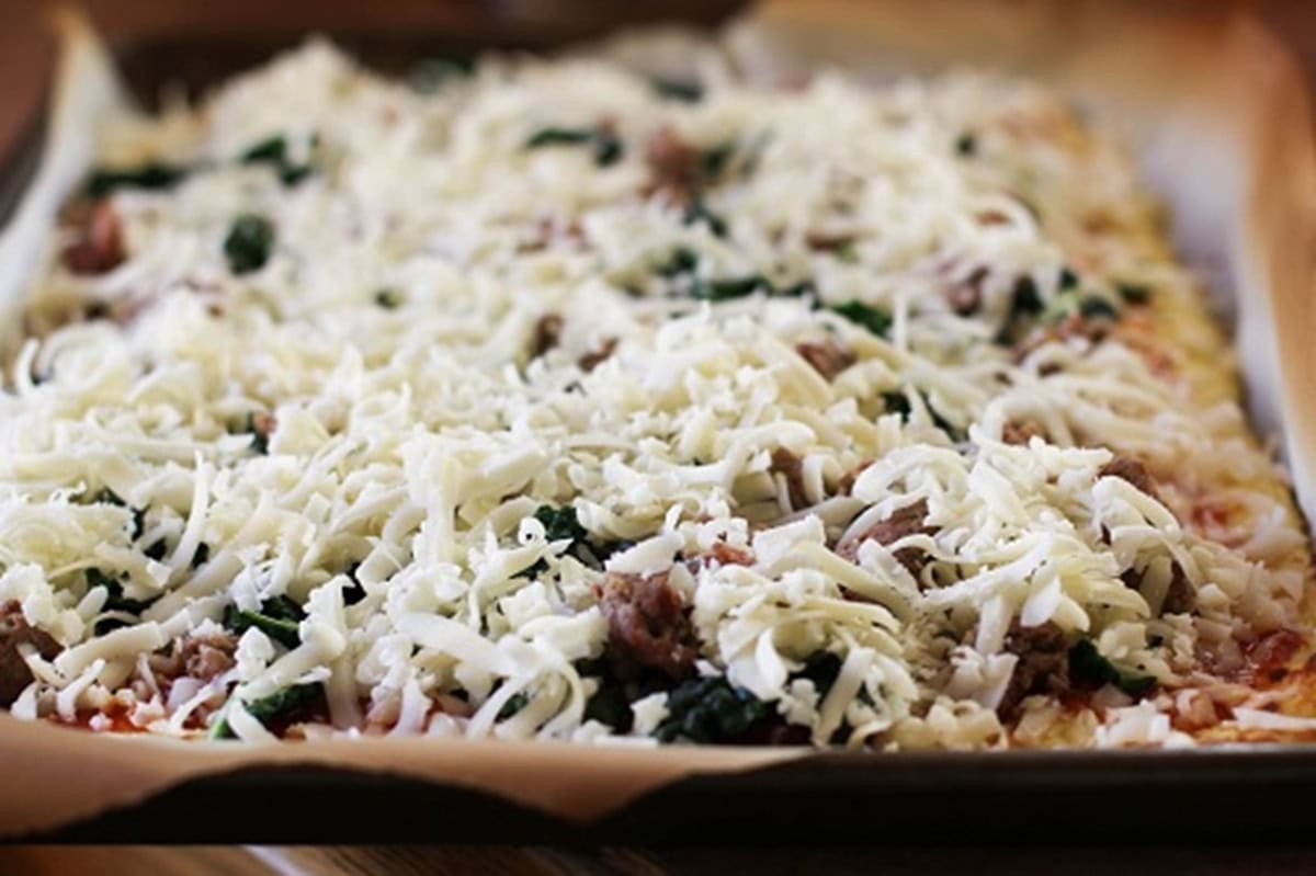 Then sausage and cheese, or any of your favorite pizza toppings.