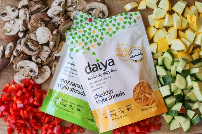 I used Daiya Mozzarella-Style Shreds (with a little spritz of Cheddar-Style Shreds) for the cheese portion of these vegan enchiladas. For those of you who are unfamiliar with Daiya’s products, they are all gluten-free, soy-free, nut-free, and dairy-free. The shreds are made primarily with tapioca flour, non-GMO canola oil, coconut oil, and pea protein, making them a healthful alternative to dairy products.