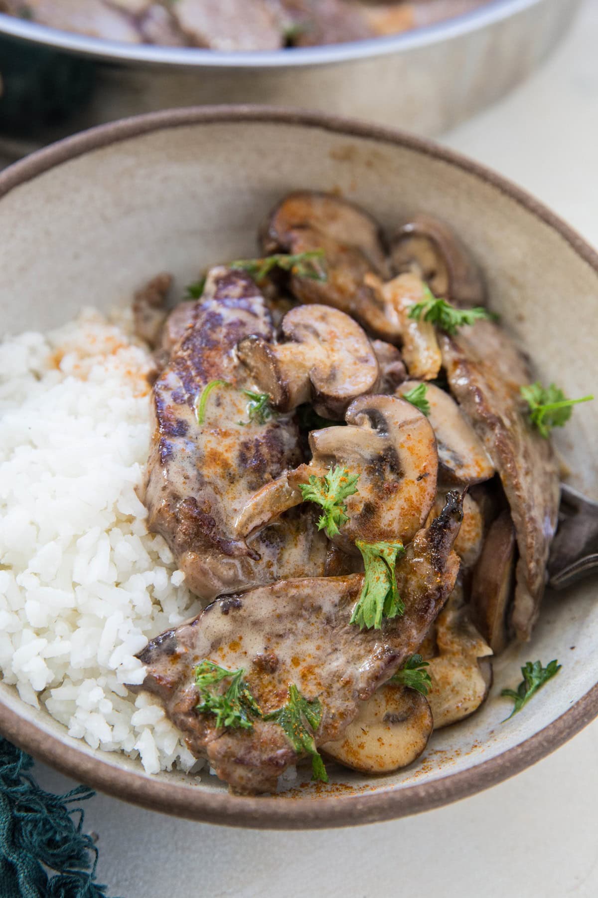 Serve beef stroganoff with steamed white rice, gluten-free pasta, zucchini noodles, or side dish of choice with chopped parsley.